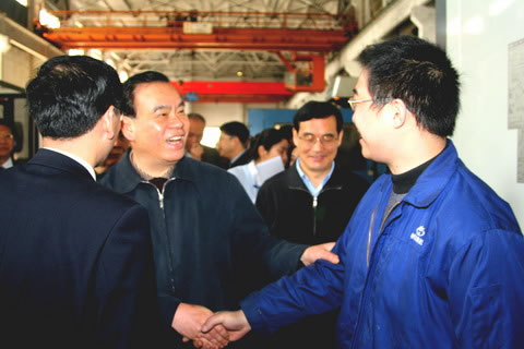 呂省長在精機公司加工車間時,與精機公司經(jīng)理潘順昌、副經(jīng)理杜建勝親切握手并交談,當呂省長得知他們現(xiàn)是該公司的管理人員,并已在企業(yè)工作幾十年,欣喜地對周圍人員說,看上去那么年輕,卻有豐富的實踐經(jīng)驗,這是企業(yè)的寶貴財富。呂省長感慨地說,杭機集團發(fā)展很快,原來廠區(qū)在環(huán)城東路時,就有近二千名員工,而現(xiàn)在人員減少,經(jīng)濟效益卻明顯提高,變化真大。呂省長指出,要充分認識加快發(fā)展裝備制造業(yè)的重要性和緊迫性,進一步加快發(fā)展裝備制造業(yè),推動產(chǎn)業(yè)結(jié)構(gòu)優(yōu)化升級和經(jīng)濟增長方式轉(zhuǎn)變。